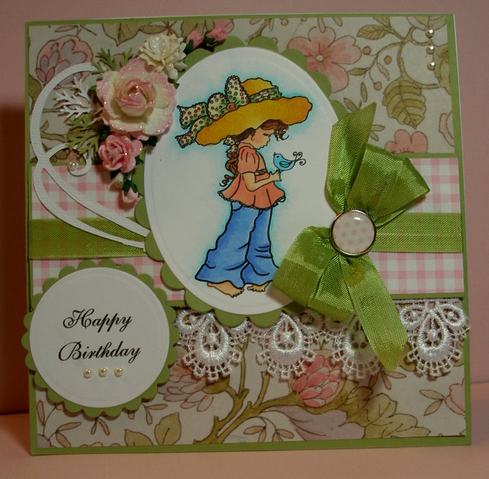 Oh, this is definitely a "girl" card! Love all the flowers, lace & embellishments you have added to your darling image! It's the perfect card for any gal!